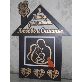 Ключница "Наш дом". Изготовлена из березовой фанеры, покрыта акриловыми красками и лаком. Размер 60х47 см...