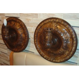 Настенные светильники, Изготовлены из сосны, покрыты грунтом, патиной, лаком. Диаметр 55см. Изготовим по заказу , возможно изменение размера, другой цвет ( покрытие морилкой). Срок изготовления от 7 дней. Цена указана за один светильник...