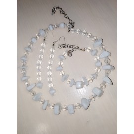 Комплект серьги, ожерелье и браслет на руку сделан из Камня Белого агата (халцедон) и горного хрусталя... Большой выбор комплектов, делаю на заказ браслеты на руку, на ногу, шпильки для волос и многое... ..
